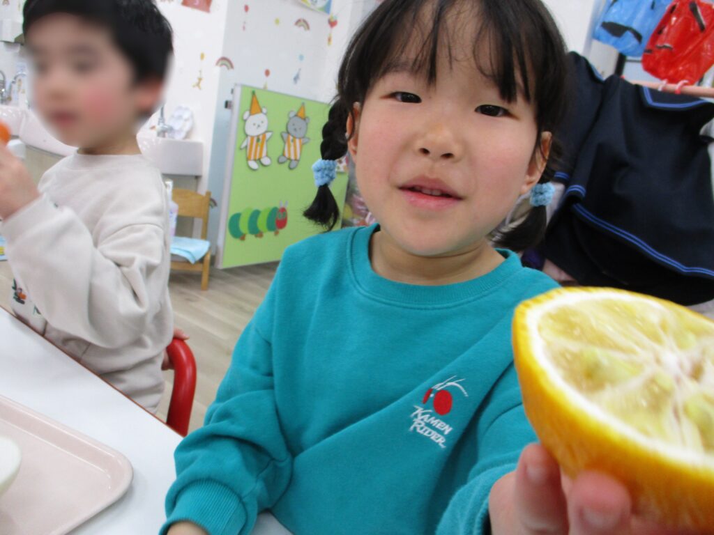 特に「柚子」は興味津々!「オレンジかな?」と不思議そうににおいをかぐ子が多く見られました🍊