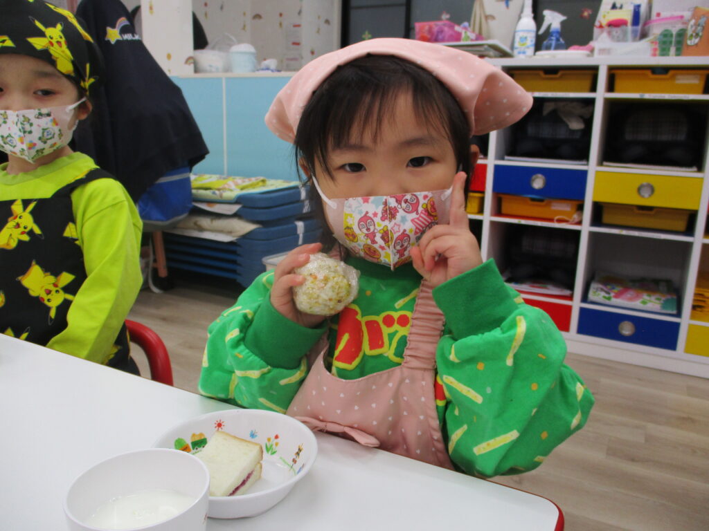トパーズクラスでは秋ランチの日に、おにぎり作りにチャレンジ!