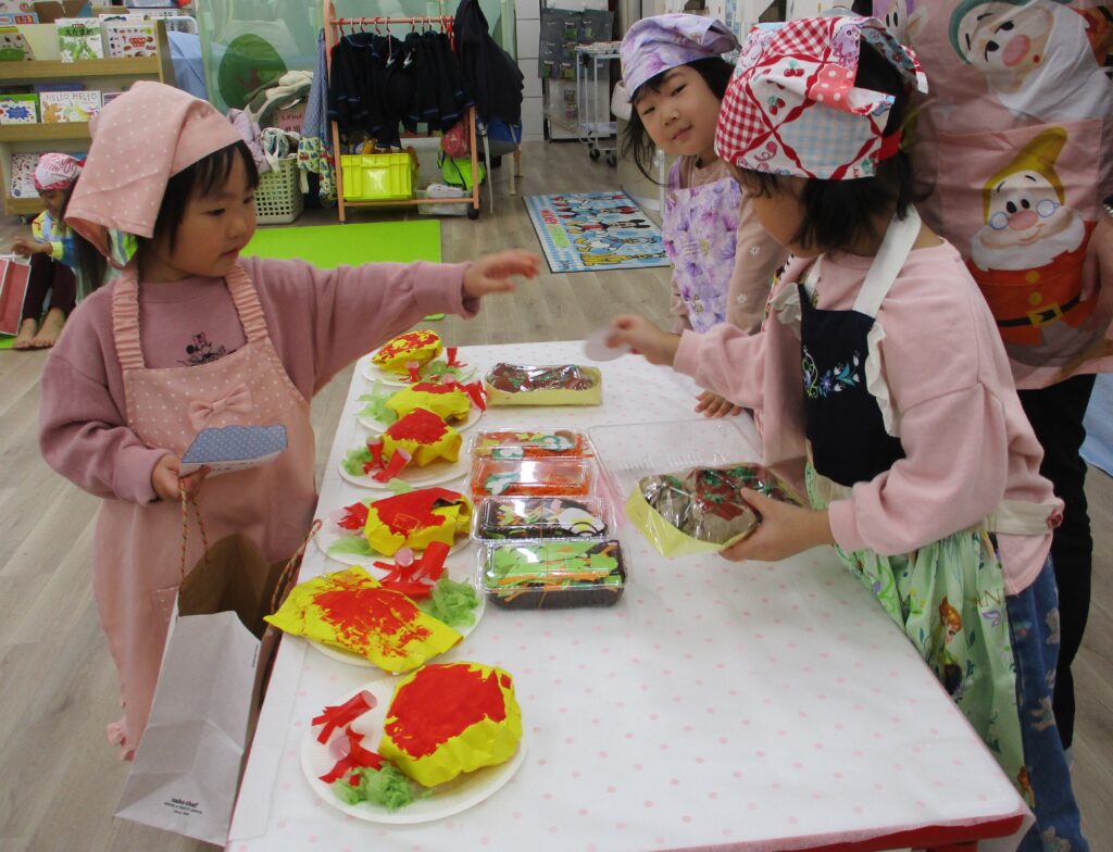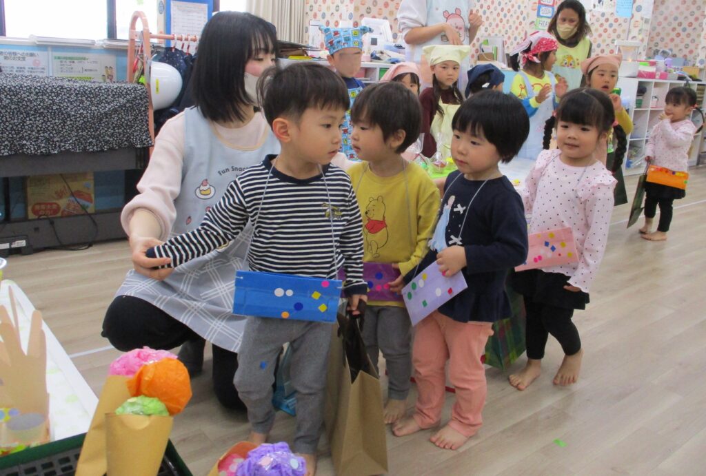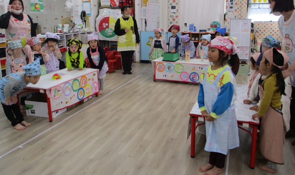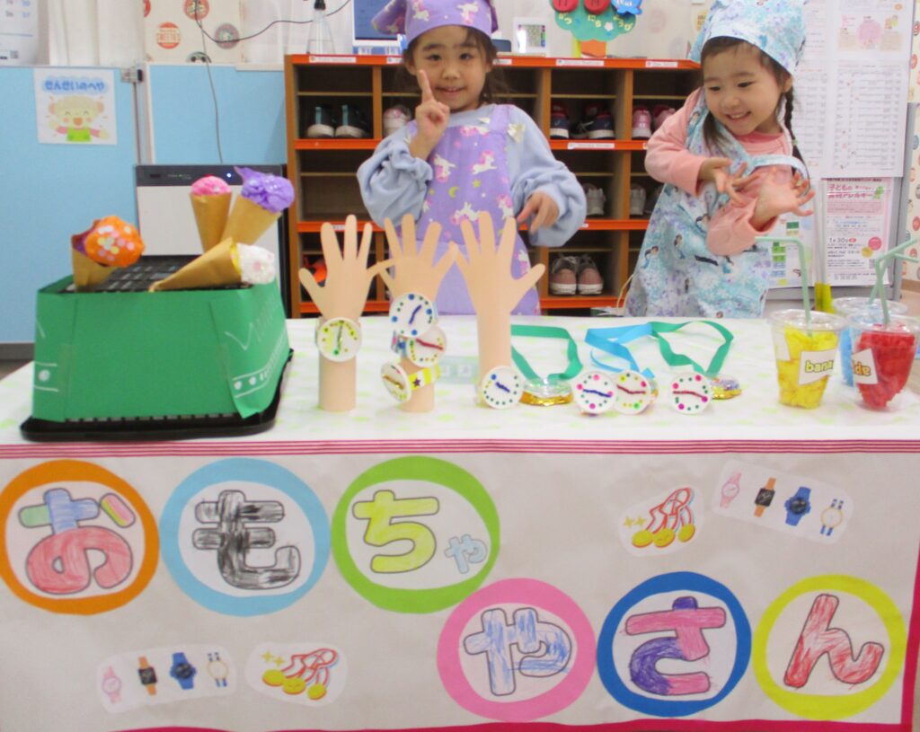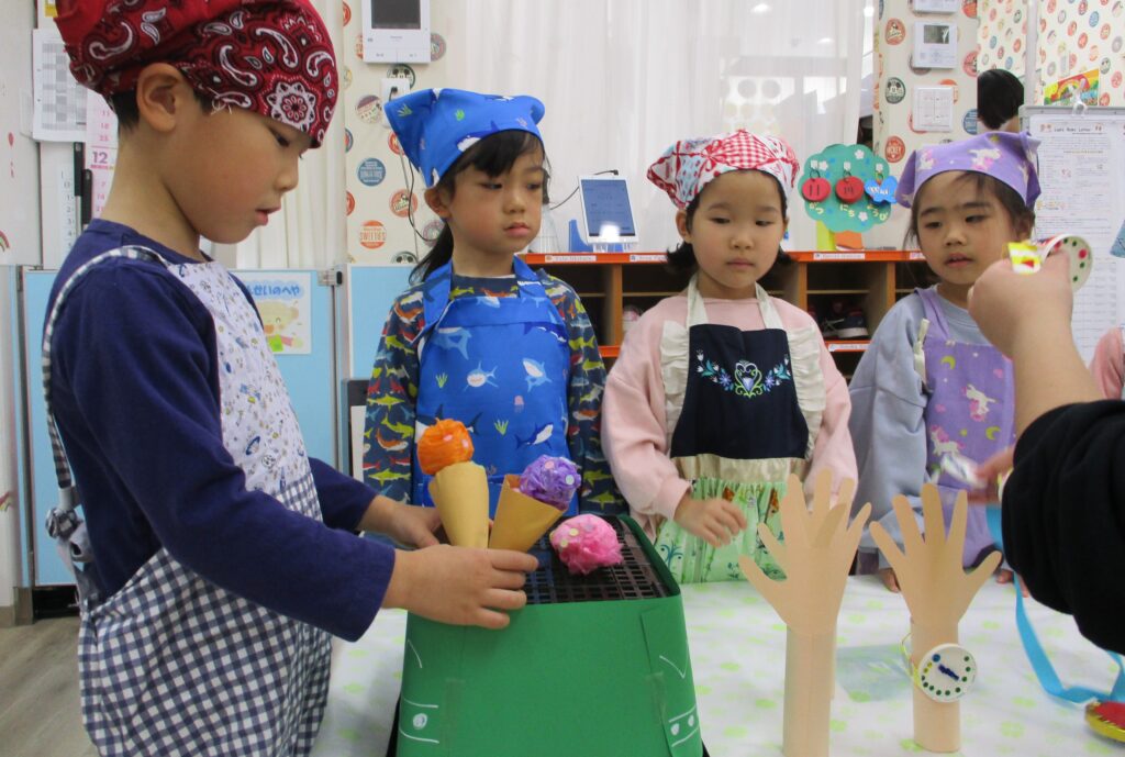 続いては、キンダークラスのお友だちが順番に店員さんとお客さんになって
