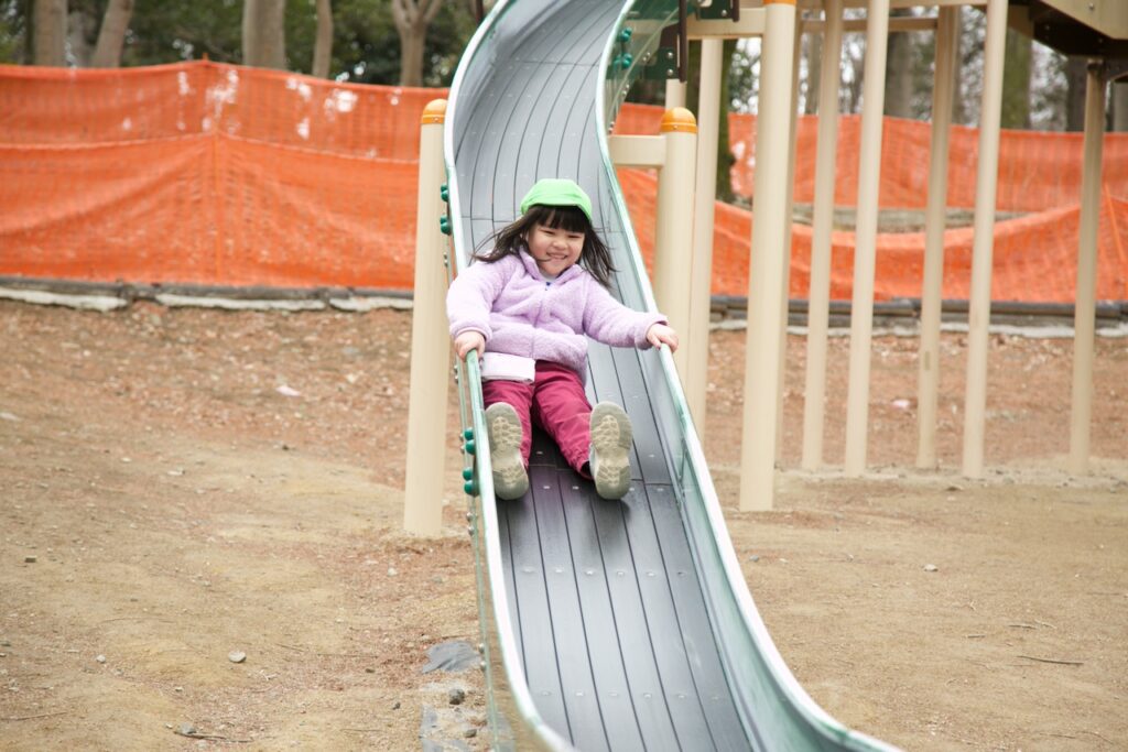 公園では普段の公園とは違う大きな遊具にみんな大喜び!!長い滑り台やアスレチックでたくさん遊ぶことが出来ました♪
