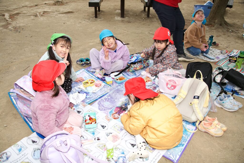 遊んだ後は公園内でみんなでお弁当を食べました😋 お友達とお弁当を見せ合ったり、会話を楽しんだりしながらみんな嬉しそうに食べていましたよ!