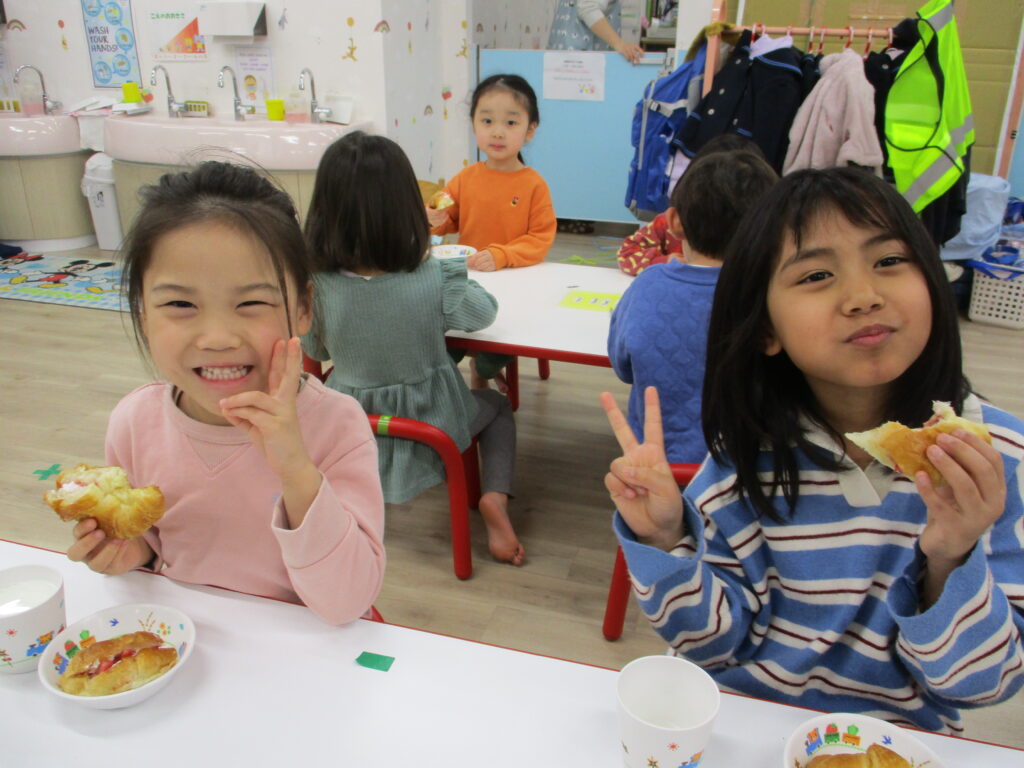 ホイップクリーム入りで、口を白くさせながら「おいしい!」とパクパク食べる姿がありました✨