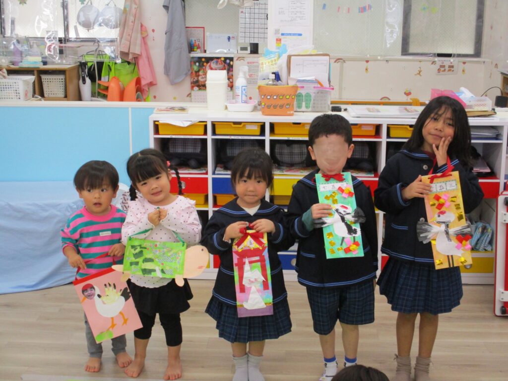自分たちで製作した千歳飴の袋を持ってハイチーズ✌
