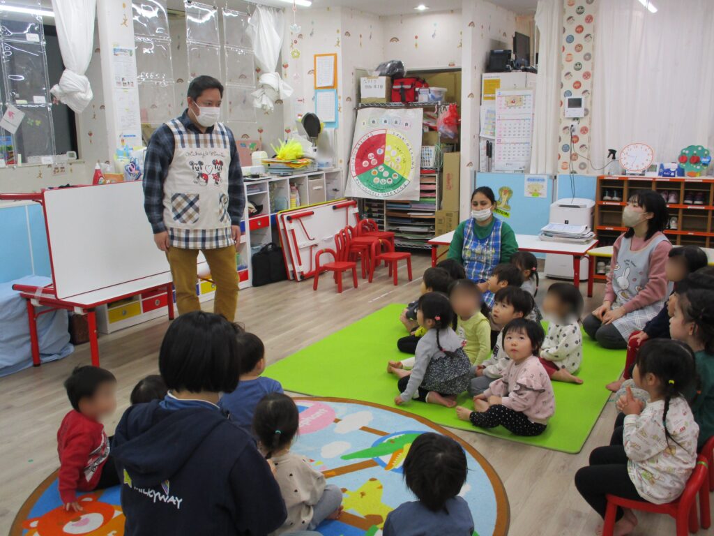 まず園長先生が、年末年始の行事や、やったことをお話してくれました。