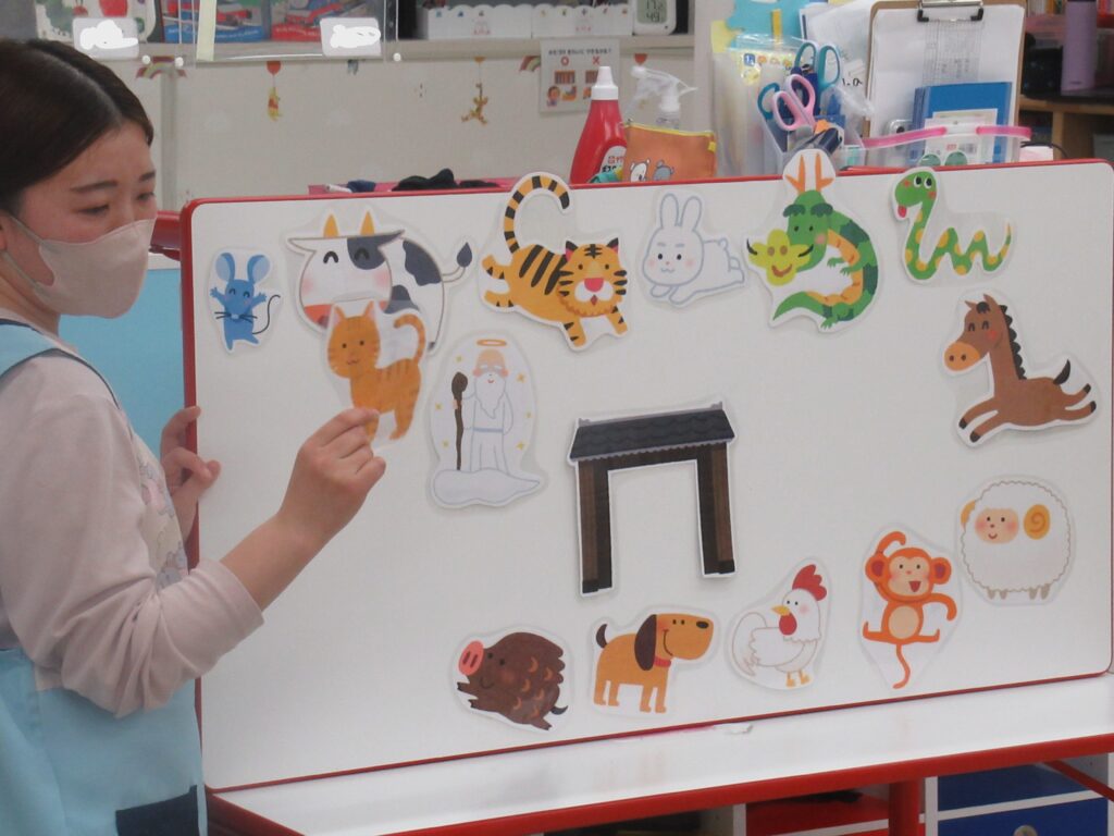 続いて、先生から十二支のお話を紹介してもらいました。