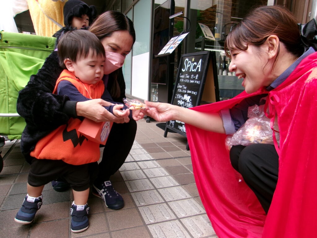 緊張しながらも「Trick or treat」と言い、無事にお菓子をもらって嬉しそうな子どもたちでした🍬🍪