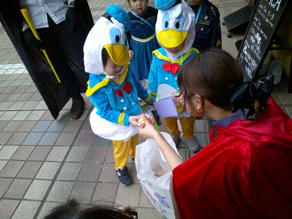 パーティー後は、みんなでお菓子を貰いにいきました。