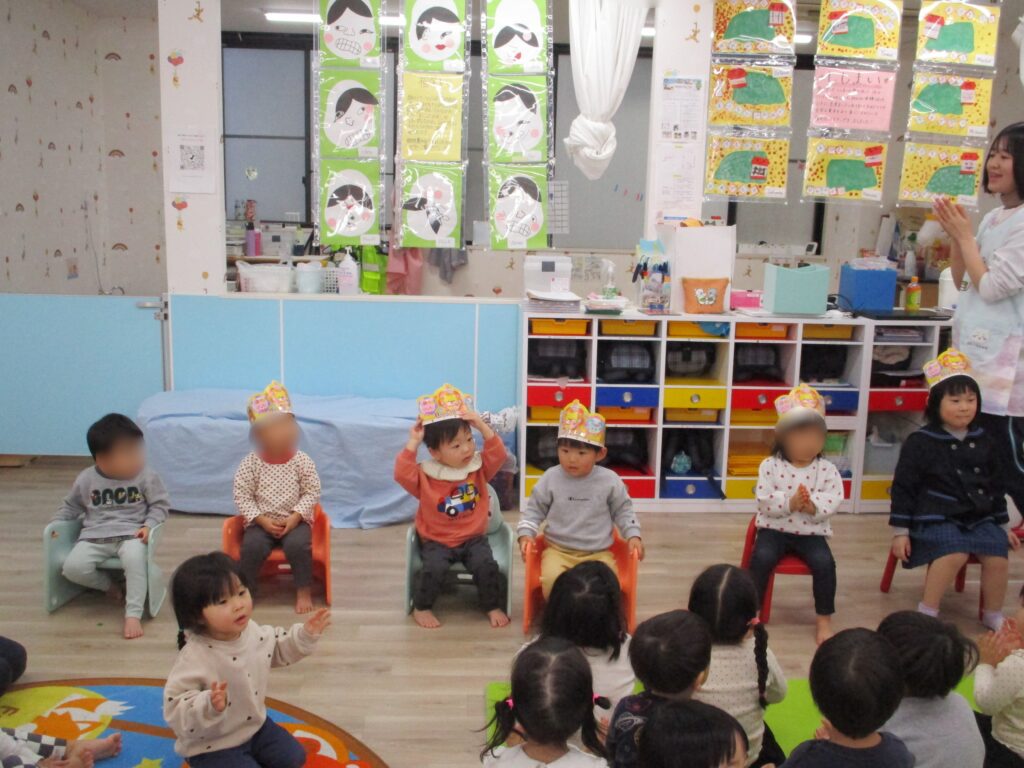 1月生まれのお友だちは7人!ラピス浦和の誕生会では最多の誕生者かもしれません。