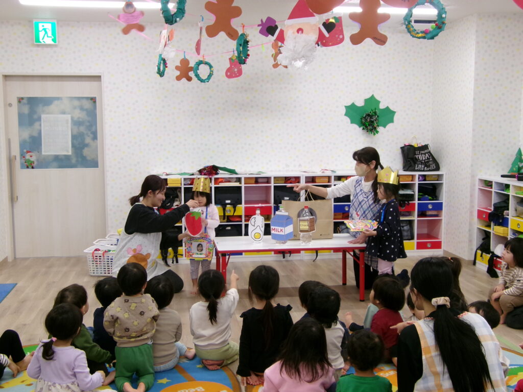 「サンタのおひげがなくなった!」の出し物では、サンタのおひげと同じ形を探すクイズをしました。