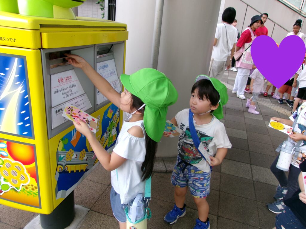 小さいお友だちは先生と一緒に、キンダークラスのお友だちは自分でポストに投函しました。