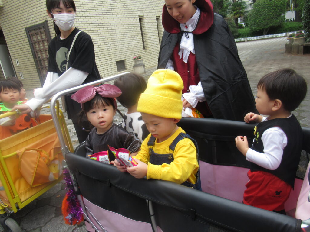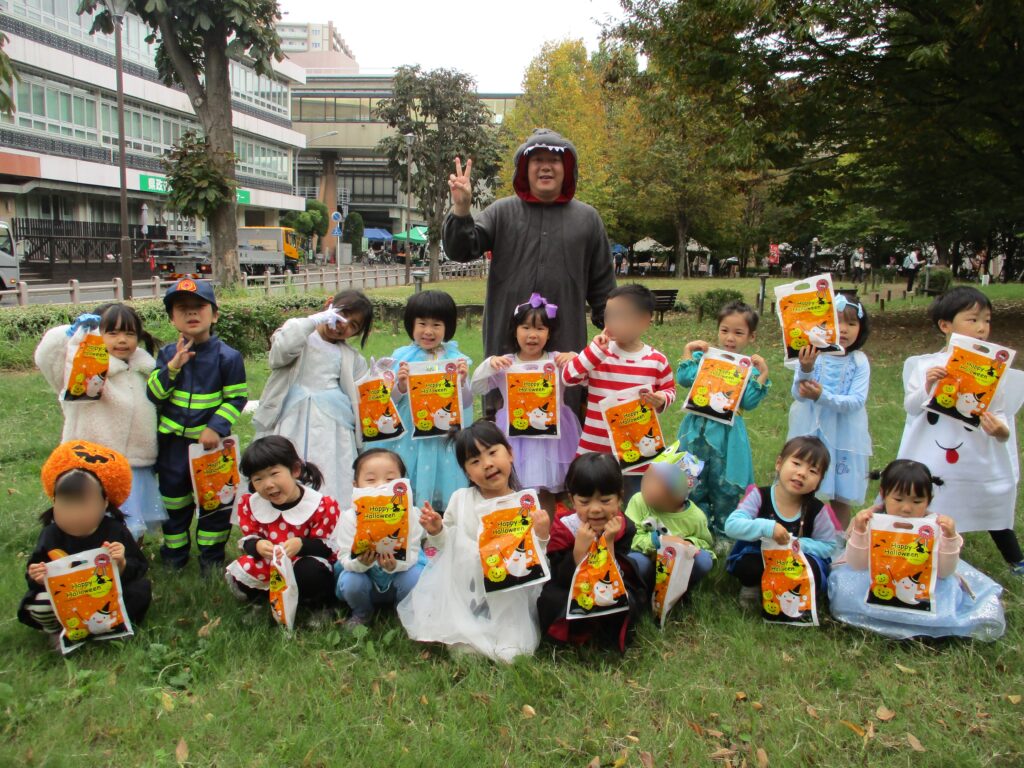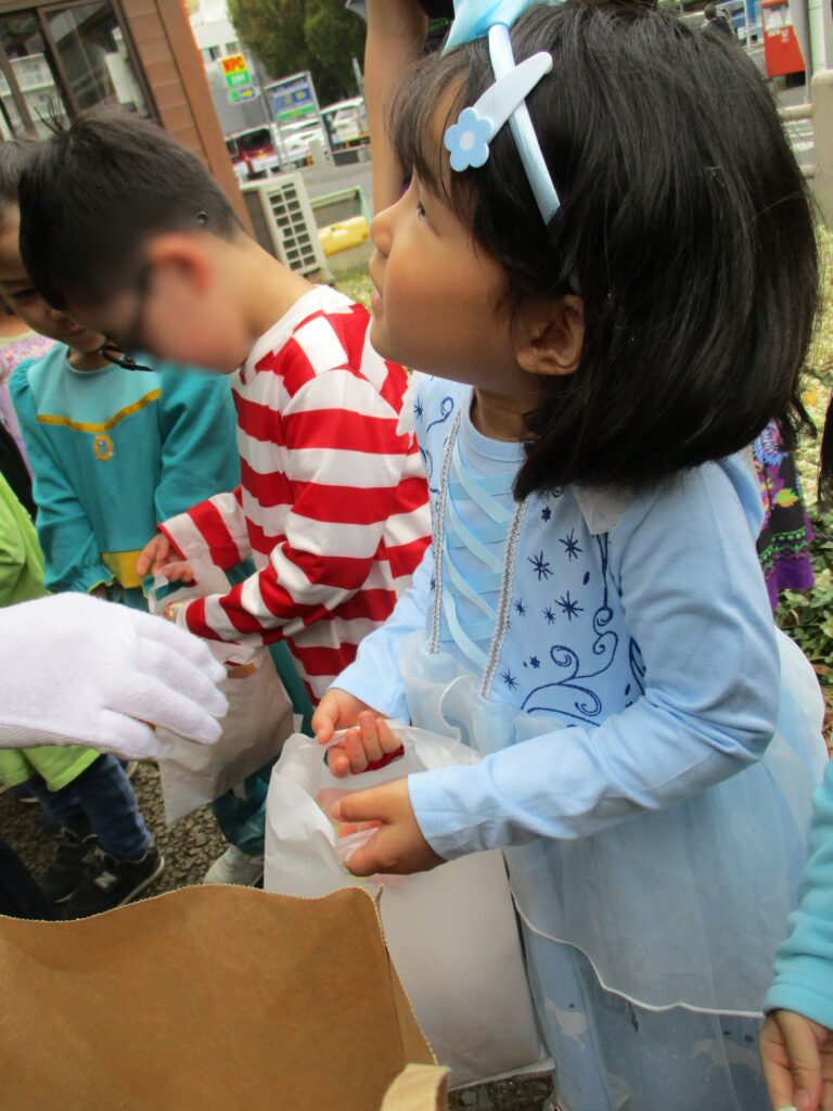 今年は近所のパン屋さんや警備員さんにもご協力いただき、子どもたちにお菓子を渡してもらいました。