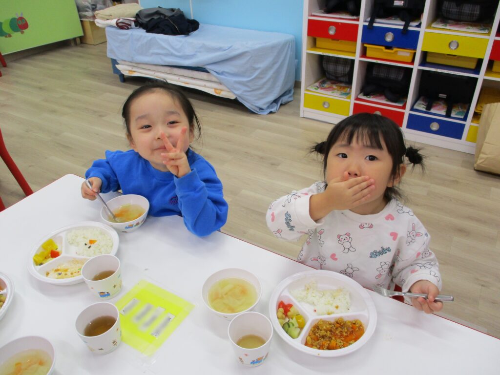 おばけのお顔のライスに大喜びの子どもたちです👻