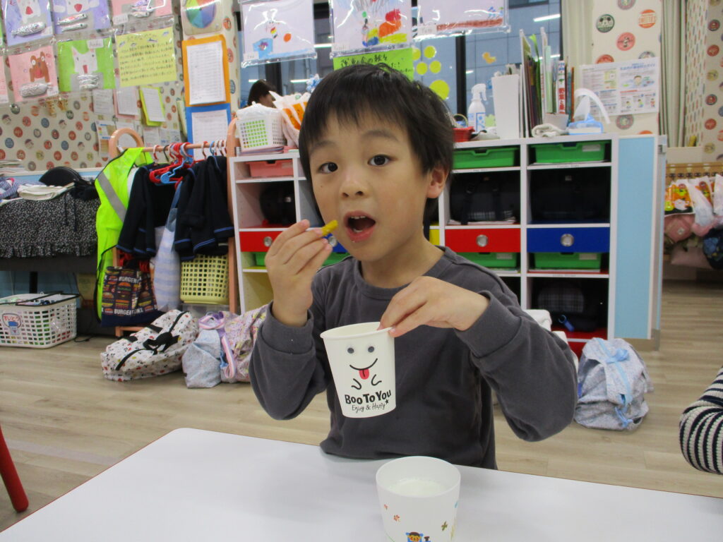 スナックタイムではお化けに自分で目をつけたり、コウモリの羽をつけたり…自分だけのマイカップに入れてもらいました🥤